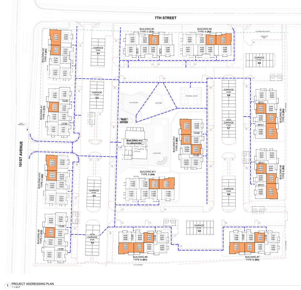 My primary contributions was ensuring that all accessible areas were located on the accessible path, including ADA garages, trash enclosures, and Type A-accessible Units.